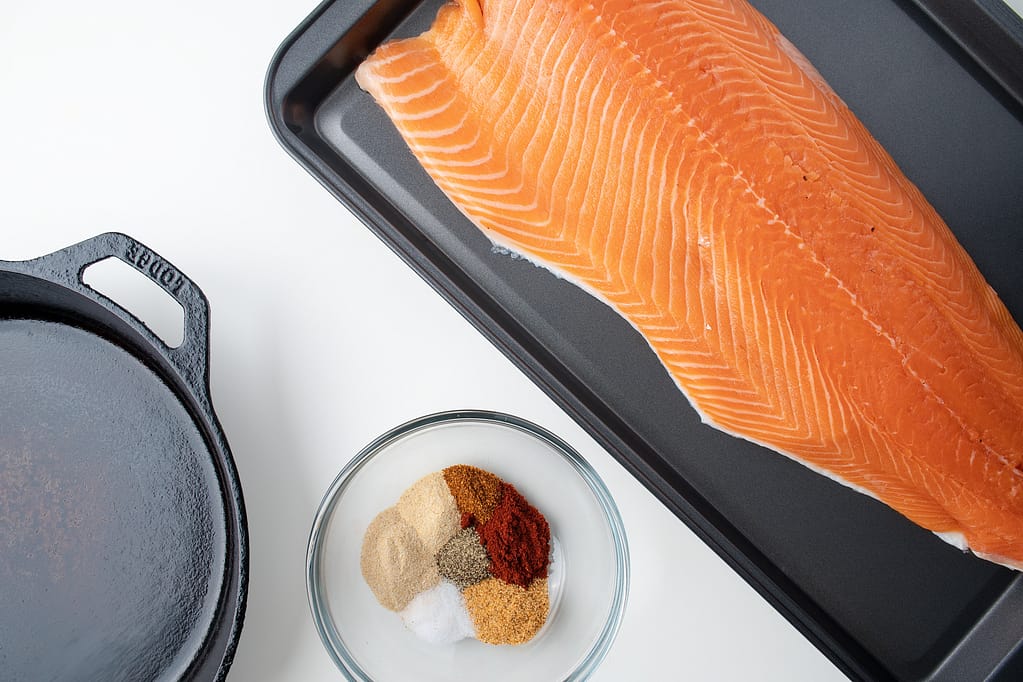 Blackened salmon isn’t “burnt salmon.” It’s a method where a bold spice blend hits a hot pan and forms a dark, flavorful crust. A cast iron skillet holds heat evenly, which is exactly what you want for that quick sear.