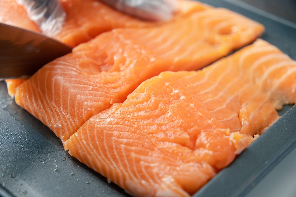 - Skin-on tip: Starting skin-side down helps protect the fish and keeps it from drying out.