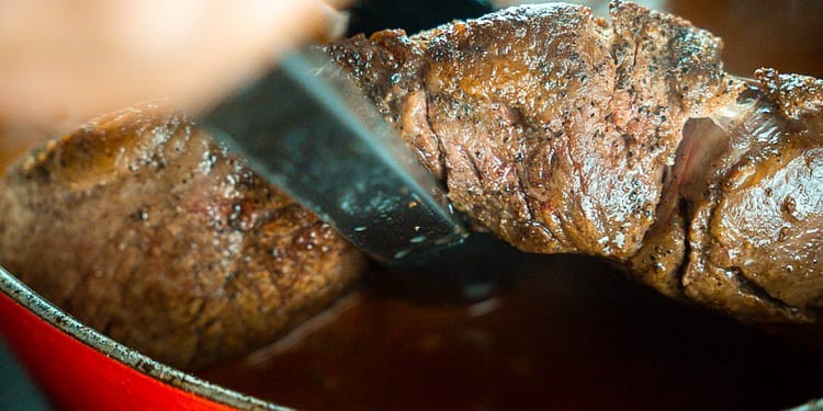 - Start by generously seasoning a 3 ½ to 4-pound chuck roast with salt and refrigerating it, uncovered, for 12 to 48 hours. Then, season with pepper and sear in a Dutch oven with olive oil over medium heat until golden brown on all sides, approximately 3 to 4 minutes per side. Remove the chuck and set aside.