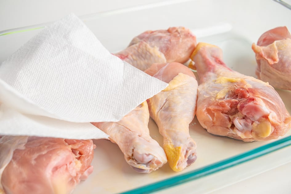 - Place drumsticks skin-side up