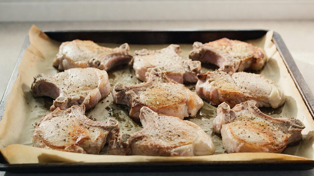 Cast iron skillets work best for even browning. For a full step-by-step stovetop method, see our pan-seared pork chops recipe.