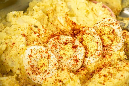 This version is made with Duke’s mayo, mustard, sweet relish, boiled eggs and just a little sugar to balance the tang. Then I finish it off with Creole seasoning + cayenne for a little kick. And trust me this instant pot potato salad gets even better after it chills, so don’t skip the fridge time.