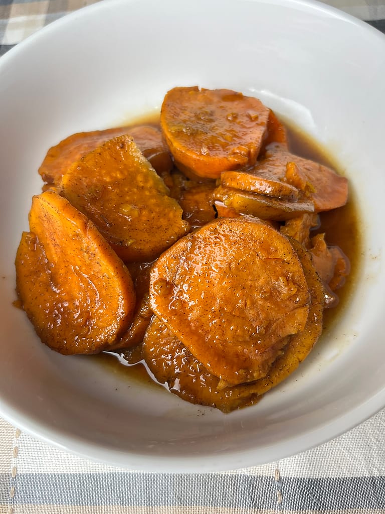 In most Southern kitchens, candied yams are made with orange-fleshed sweet potatoes baked in a buttery brown sugar syrup. True yams are a different root vegetable, but in the U.S. the names are often used interchangeably—especially around the holidays. So yes: this is a classic candied sweet potatoes recipe that people call Southern candied yams.